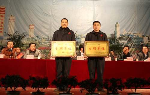 1月28日下午,我公司2013年度总结表彰大会在文体中心礼堂隆重召开。公司领导、劳动模范及其家属、员工近千人参加了大会,董事长、总经理余华强同志出席会议并作了重要报告。