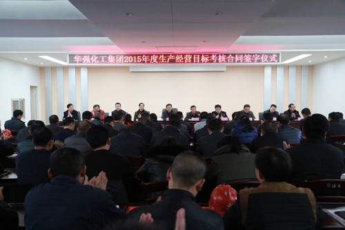 12月26日上午,集团公司2015年度生产经营目标考核合同签字仪式大会在生产办公楼五楼会议室举行。集团公司领导、二级公司领导和车间、部门团队130余名管理干部参加了签字仪式大会。