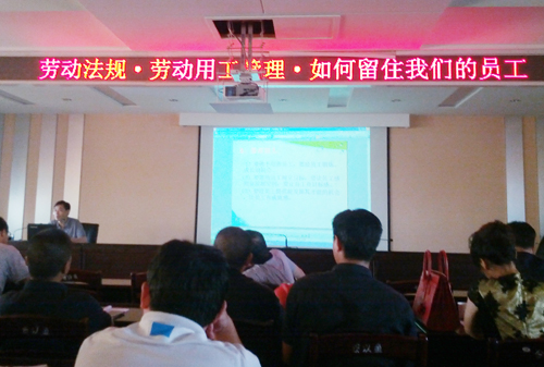 为规范我公司劳动人事及劳动用工管理,最大限度地规避劳动争议风险,同时,也为了让管理者了解未来劳动力市场的发展趋势,珍惜并留住员工,人力资源部于8月22日在生产办公楼五楼会议室对全公司管理人员进行了一次主题为“劳动法规·劳动用工管理·如何留住我们的员工”的培训,150余名企业管理人员参加培训。(图为培训现场)