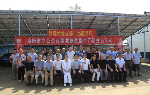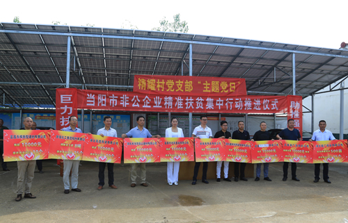 8月28日,由委统战部、市工商联发起的“非公企业精准扶贫集中行动推进仪式”在当阳市坝陵办事处精耀村举行,10家非公企业现场为精耀村捐赠物资10余万元,同时提供就业岗位110个,以实际行动践行了“致富思源富而思责”的企业承诺。副市长尹万明参加了推进仪式。仪式上,公司党委副书记、工会主席王建波作为企业代表就精准扶贫作了表态发言,并代表公司董事长万建华为精耀村送去价值万余元的华强复合肥8吨,供就业岗位15个。