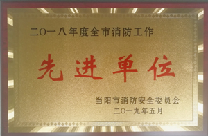 近日,当阳市消防安全委员会发出通报表彰, 我公司荣获2018年度当阳市消防工作先进单位荣誉称号。