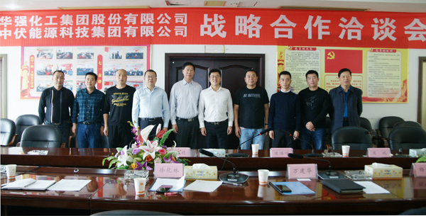 1012上午,中伏能源科技集团有限公司与我公司战略合作洽谈会在行政办公大楼五楼会议室。中伏能源科技集团有限公司董事长陈博屹一行4人莅临华强化工,我公司党委书记、董事长万建华,总经理徐化林,副总经理杨世立等公司领导出席会。双方围绕当前已有合作项目和潜在合作项目展开交流讨论。