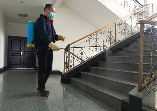后勤管理部安排人员每天对公司公共生活设施、办公区域喷洒84消毒液进行全方位消毒,并在各办公楼每个洗手间放置了洗手液。