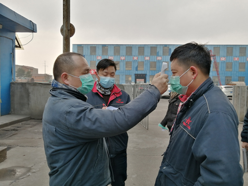压缩车间管理人员每天都利用班会强调,所有员工不要外出下乡回老家,不要走亲访友聚餐,不要接触外地返乡人员,如遇到身体不适迅速反映上报,戴好口罩勤洗手。班长在班前会上对每个人进行测温登记并做好记录。