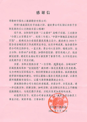 感谢信中说,近年来,当阳始终坚持“工业强市”战略不动摇,三次跻身“全国工业百强县市”,连续三年进入“中国中部地区县域经济百强”,被确定为全省高质量发展重点县市,被表彰为2020年度全省县域经济工作成绩突出单位。这些丰硕成果,饱含着贝博app在线的支持参与。
