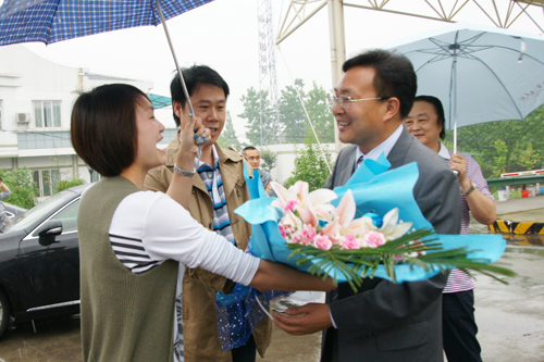 4月28日,公司董事长、总经理余华强同志荣获2012年湖北省劳动模范荣誉称号,近200名干部员工冒雨到当阳东高速路口迎接余董事长载誉归来